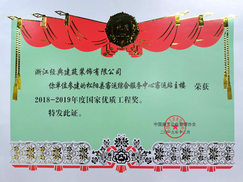 2018-2019國(guó)家優(yōu)質(zhì)工程...